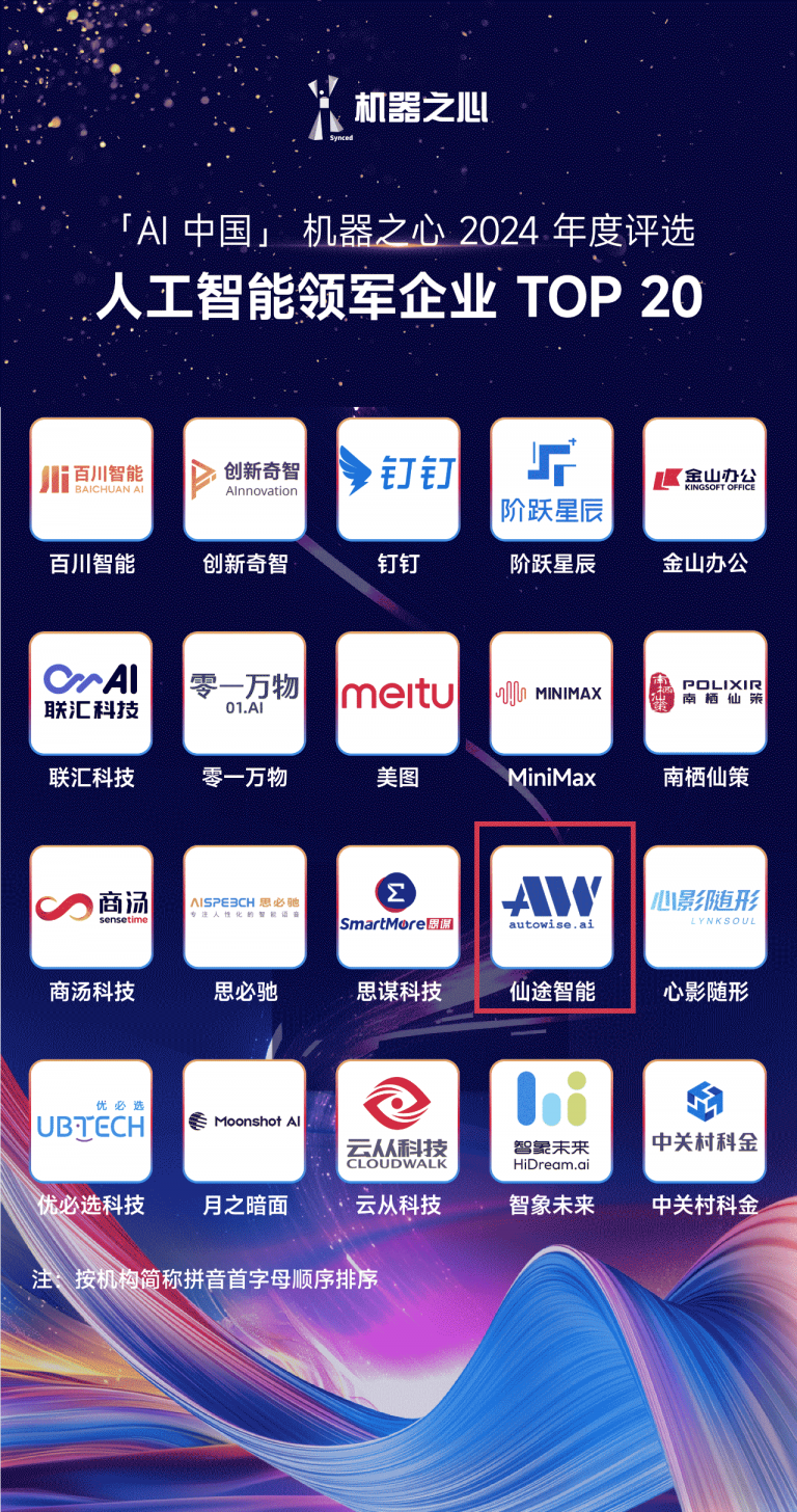 12月27日,机器之心正式公布「AI中国」2024年度评选榜单,仙途智能凭借在AI领域的科研硬实力和规模商业化落地,成功入选机器之心人工智能领军企业 TOP20。此次与阶跃星辰、MiniMax、月之暗面、百川智能、商汤科技、钉钉等知名企业共同上榜,进一步验证了仙途智能在人工智能领域的领先地位。